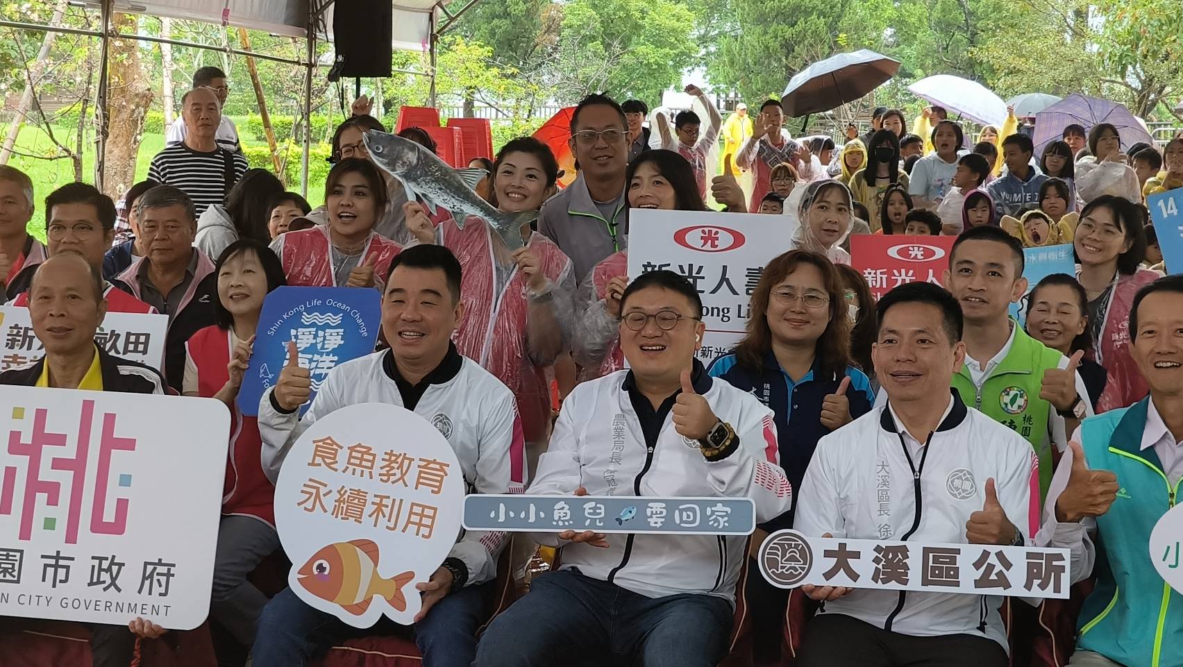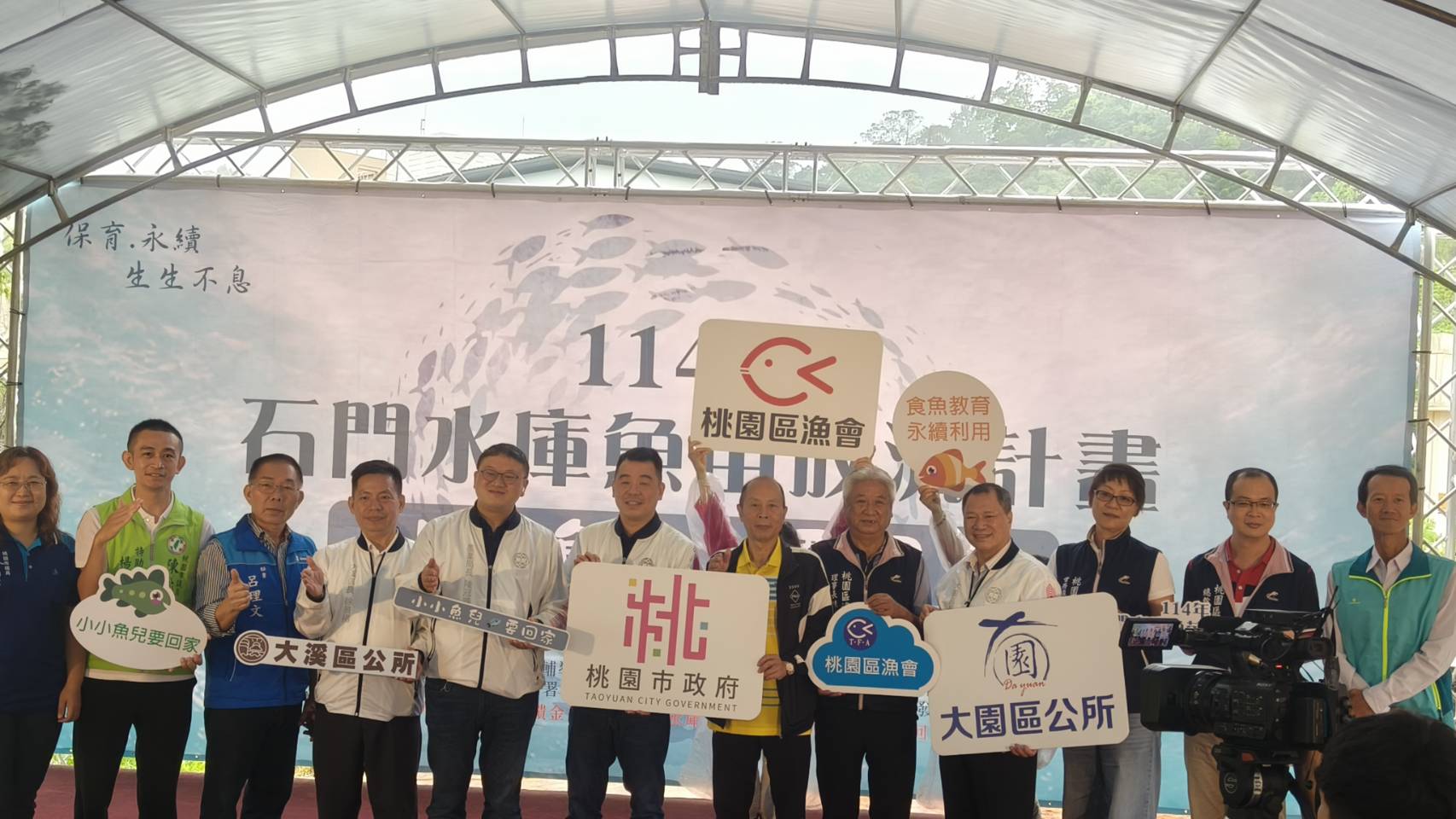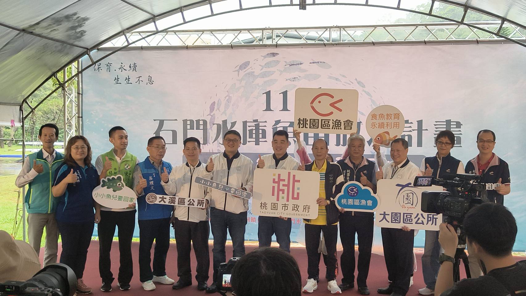 桃園市政府副秘書長金志聿今(21)日前往桃園大溪阿姆坪生態園區,出席「小小魚兒要回家」石門水庫魚苗放流活動,現場放流大頭鰱魚苗7.5萬尾以及烏鰡魚苗1萬尾,總計8.5萬尾,預期可為當地漁業創造千萬經濟價值;放流活動兼顧環境與食魚教育,打造自然、漁業、教育三贏局面,讓水庫魚產業生生不息。
